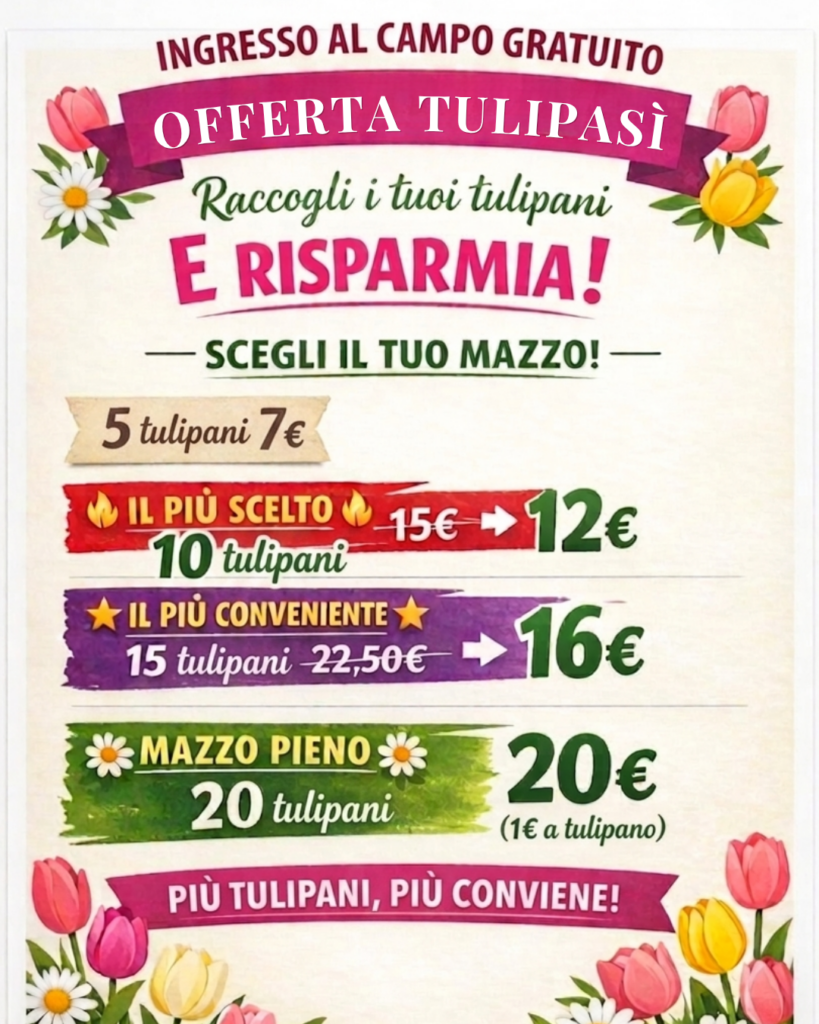 - Il pagamento dei tulipani aggiuntivi avviene successivamente alla cassa in uscita.